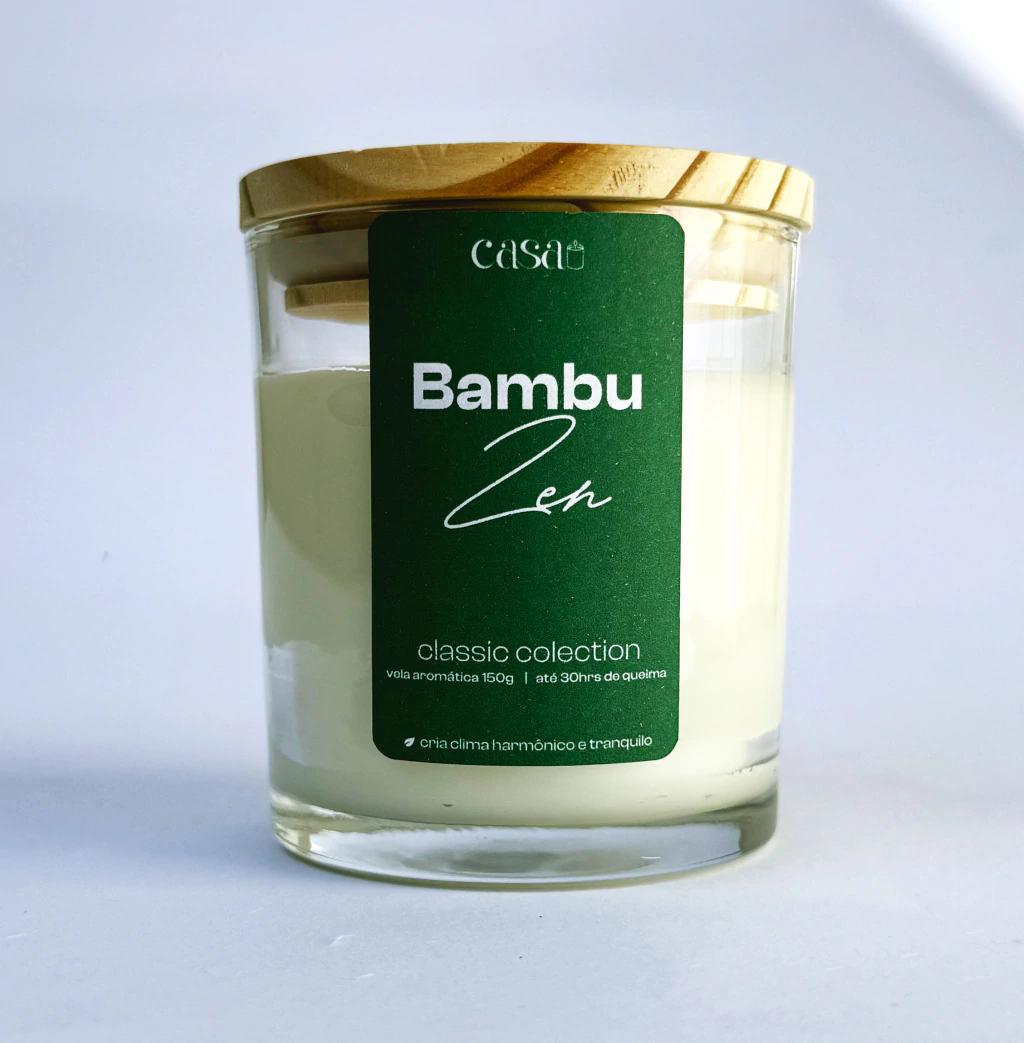 Crie uma atmosfera de suavidade com a Vela Aromática Flor de Algodão, uma fragrância delicada que transmite conforto e leveza para o seu ambiente. Ideal para transformar qualquer espaço em um lugar de aconchego e tranquilidade. O aroma Bambu Zen CasaVela, uma fragrância fresca e elegante, traz harmonia e tranquilidade para o seu ambiente. Perfeito para criar uma atmosfera acolhedora e equilibrada, esta vela é ideal para transformar qualquer espaço em um verdadeiro refúgio de paz.